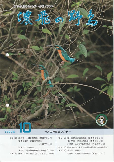 表紙の鳥 - カワセミ 「探鳥のきっかけをくれる鳥NO.1」 写真/日比野晃祥 文責/工藤和彦